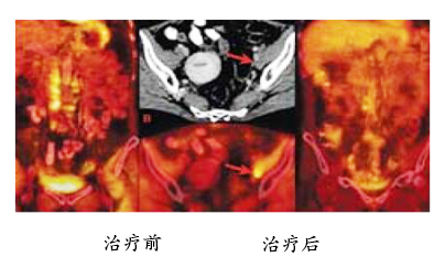 治疗后六个月PET-CT 复查结果提示,近98%的转移病灶消失。 |