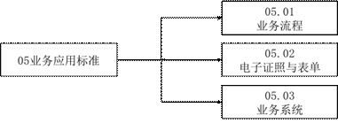 业务应用标准分体系层次结构见图7,包括业务流程、电子证照与表单、业务系统3个二级类目。