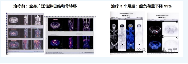 案例154岁,格里森评分为九分(5级),病情与拜登相似。病情进展至mCRPC后,服用阿比特龙,病情稳定3个月左右后继续进展。随后单用ACTL治疗。三个月后,PET-CT检查显示其体内瘤负荷量下降99%,血PSA恢复正常。该患者的治疗结果曾引起香港威尔士亲王医院的轰动。存活至今已超过10年。