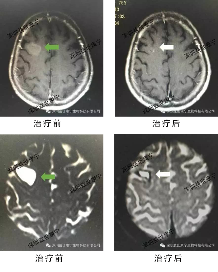 在本案例中,患者在单独使用ACTL技术的情况下,经过四次治疗,血清肿瘤标志物水平降低,脑部转移病灶显著缩小,病情得到有效控制,精神、体力等均有明显改善。