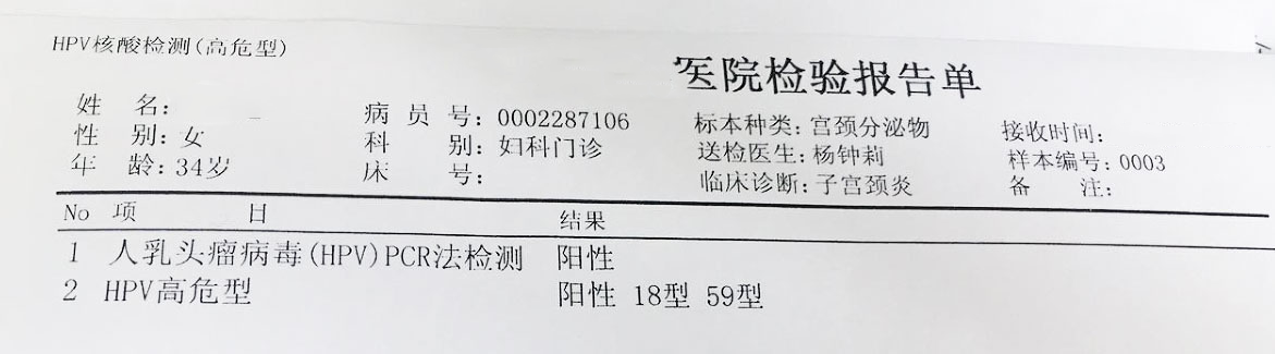 复查结果出来了,HPV 59型虽然转阴了,但不仅HPV 18型还存在,而且还冒出了HPV 73型感染。李女士的心情又跌到底谷,于是向专家求教。专家告诉她,她的复查只接受了HPV的定性检测,这是医院通常采取的HPV检测手段,对疗效判断意义不大。对于定性检测,一百个HPV病毒和一个HPV病毒都是判定为阳性。因此,即使HPV治疗后大量减少,定性检测是无法显示这种变化的。李女士于是将治疗前和6次治疗后的标本同时送至医院进行HPV萤光定量PCR检测。定量检测结果又使她看到了光明! 治疗后,HPV病毒量至少下降了一千倍以上!于是她要求继续接受HCTL科研治疗,直到彻底消灭HPV 为止。