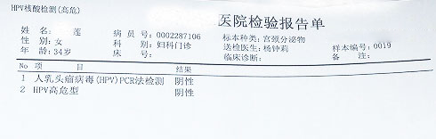 又到了复查的日子,对李女士来说是煎熬的,对于再次治疗失败充满恐惧。复查结果使李女士喜出望外,高危型HPV全部转阴!多年缠绕她的恶魔终于摆脱了!